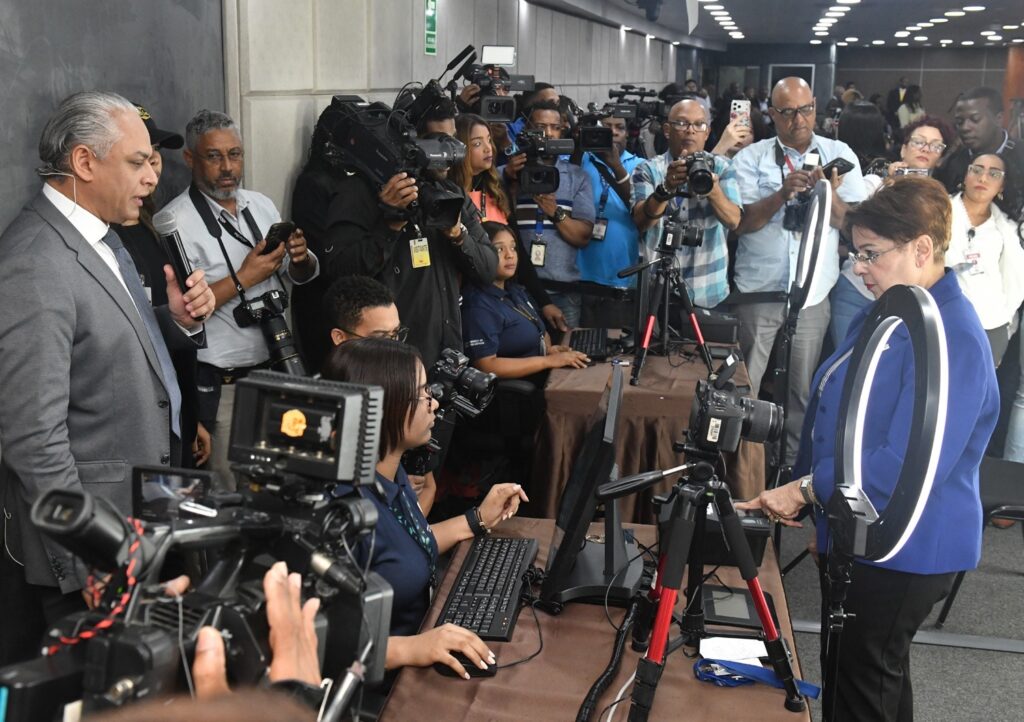 La captura de datos biométricos y personales inició con la servidora de la Junta Central Electoral, Digna Mercedes Díaz Rodríguez, quien tiene 53 años laborando en la institución.