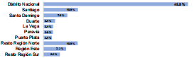 Respecto a la distribución de las remesas recibidas por provincias, el BCRD señala que el Distrito Nacional recibió una proporción del 45.8 % durante diciembre, seguido por las provincias de Santiago y Santo Domingo, con un 10.9 % y 7.5 %, respectivamente. Esto indica aproximadamente dos terceras partes de las remesas (64.2 %) se reciben en las zonas metropolitanas del país.