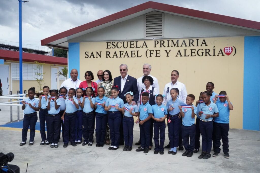 El presidente de la República, Luis Abinader, junto al ministro de Educación, Luis Miguel De Camps, encabezó este domingo la inauguración de la Escuela Primaria San Rafael Fe y Alegría, en el sector Los Guandules del Distrito Nacional, un centro educativo con capacidad para 810 estudiantes de esta comunidad.